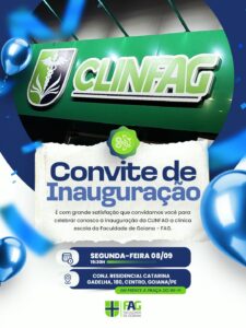 A Faculdade de Goiana tem a honra de convidar você para a inauguração oficial da CLINFAG – Clínica Escola da Faculdade de Goiana, um espaço dedicado ao cuidado com a saúde e à formação de excelência dos nossos futuros profissionais.