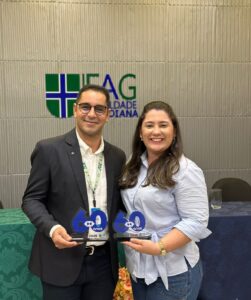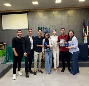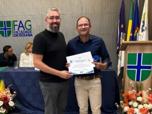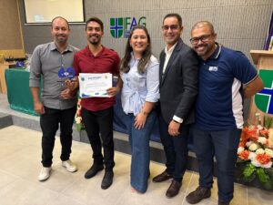 - Os egressos da FAG – André Batista, João Rodrigues e Lucas Sousa – também marcaram presença trazendo suas experiências. Eles compartilharam sobre a transição da formação acadêmica ao mercado de trabalho, narrando suas trajetórias profissionais, desafios e conquistas. Destacaram, ainda, como o conhecimento técnico adquirido na graduação se converteu em protagonismo no mercado e na sociedade.