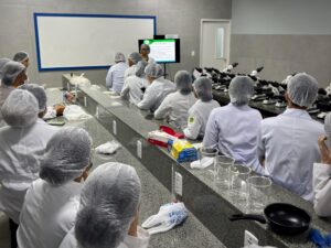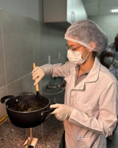 Os alunos participaram da oficina “Produção de Remédio Caseiro – Xarope de Guaco”, conduzida por Ana Karina Holanda Leite Maia, reforçando o valor dos saberes tradicionais integrados à ciência farmacêutica.